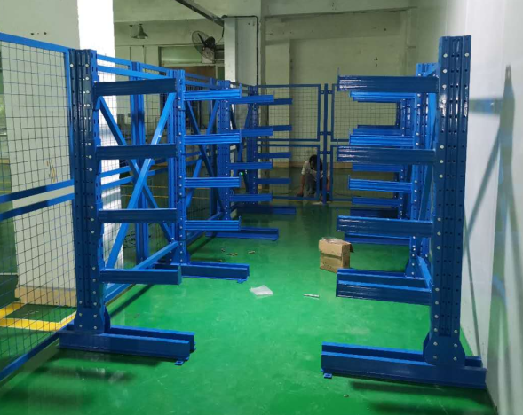 懸臂貨架的橫梁是一頭固定,另外一頭懸空,所以理論上不管多長的物品都能放上懸臂架,際應(yīng)用中常用于管材、鋁材、以及板材。通常懸臂貨架都為人工上下貨物,也可配合側(cè)取堆高機上下貨物,正取也行,但通道需要非常大。這種款式貨架有單臂和雙臂之分,專用立柱型材,設(shè)計背拉增強穩(wěn)固性,高強度懸臂,每臂可承重2000KG以上,高度可在100mm以內(nèi)上下調(diào)節(jié)。以下是我公司根據(jù)場地實際情況為客戶定做的倉庫貨架如圖: